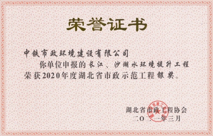 近日,2020年湖北省市政示范工程評選結果公布,公司長江、沙湖水環境提升工程項目喜獲湖北省市政示范工程銀獎。...