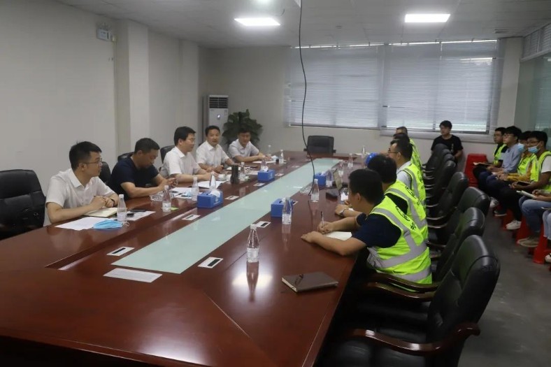 耿樹標一行深入施工現場,實地查看工程進展情況,聽取項目負責人對人員情況、施工進度、剩余工程量、工程重難點等方面的詳細匯報,并在項目部會議室召開座談會。
